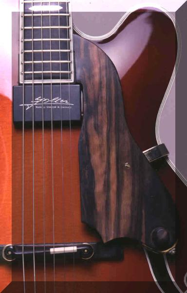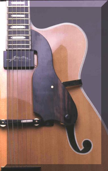 Our 17" archtop displays the wider waist allowing more resonant surface on the soundboard. This